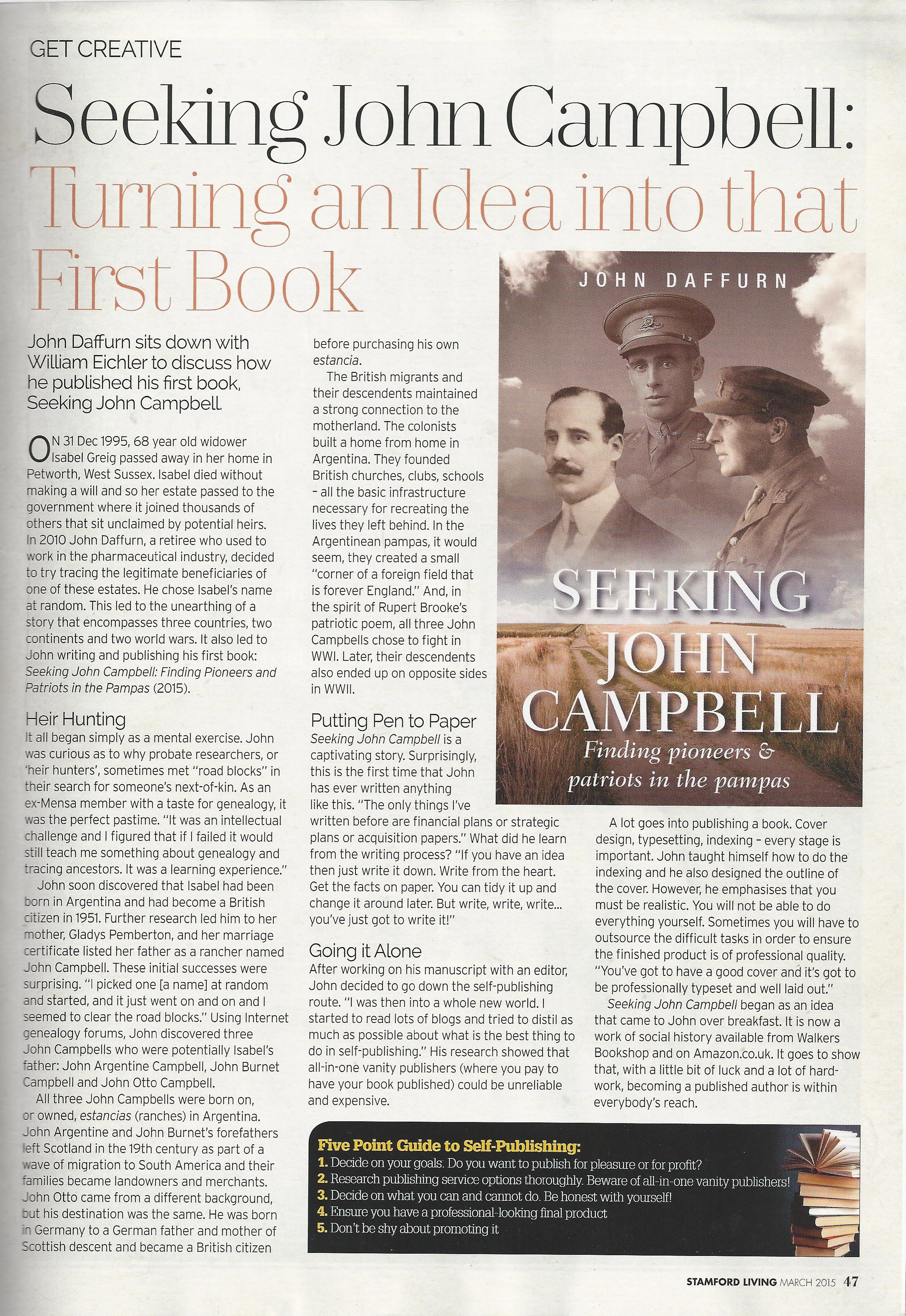 March edition of Stamford Living reviews Seeking John Campbell and explores issues around self-publication/